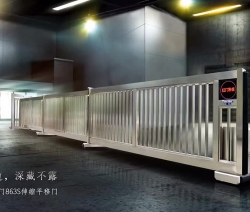 露天的電動伸縮門光澤無限,不易粘塵,不被污染氣體腐蝕,門體采用優(yōu)質(zhì)不銹鋼或鋁合金等材料制作,采用平行四邊形原理交接,伸縮靈活。